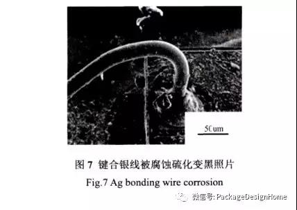 鍵合銀線有高導電率及易于成(chéng)球等優點,開(kāi)始在部分引線封裝中應用,但由于導熱率高、高溫強度低等原因,其鍵合過(guò)程中參數窗口範圍較小,且高溫條件下球焊點頸部強度低而引起(qǐ)頸部裂紋失效的幾率較高(如圖6實測圖片所示),進(jìn)而降低生産效率及大功率LED器件的使用壽命;此外,純銀線又較易被(bèi)腐蝕硫化導緻鍵合的可靠性低(如圖7實測圖片所示),這(zhè)些都(dōu)制約了鍵合銀線的應用。