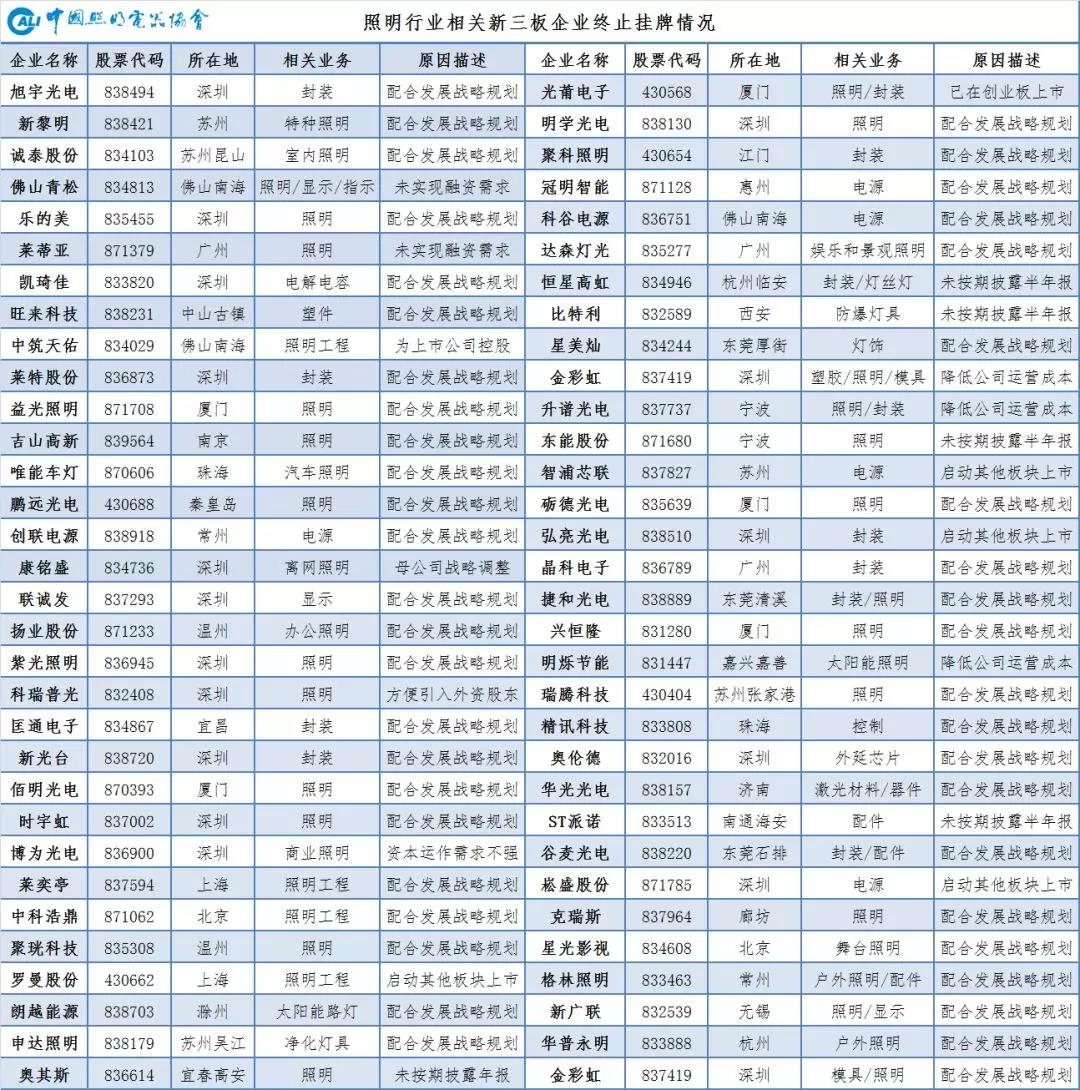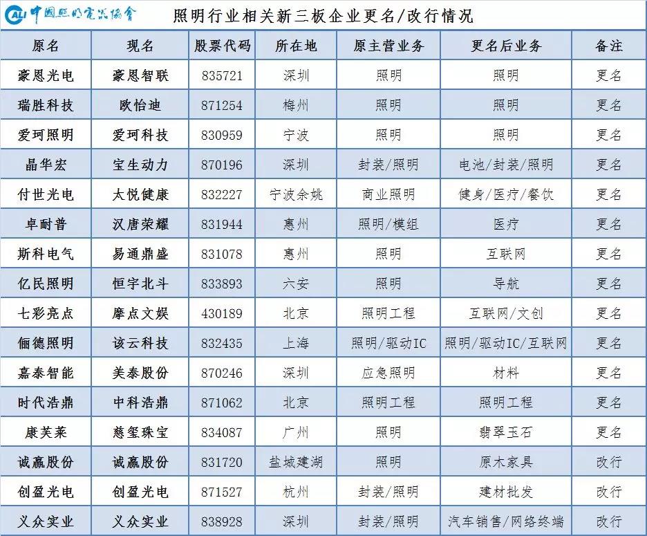 附:照明行業相關新三闆企業終止挂牌和更名改行最新情況