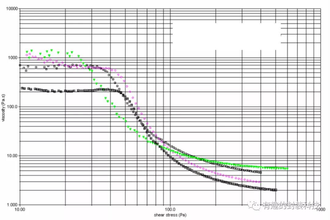2. 非牛頓流體:粘度與剪切速率&壓力相關,不同條件下,粘度會(huì)變化,比如導電膠,石油樹脂等