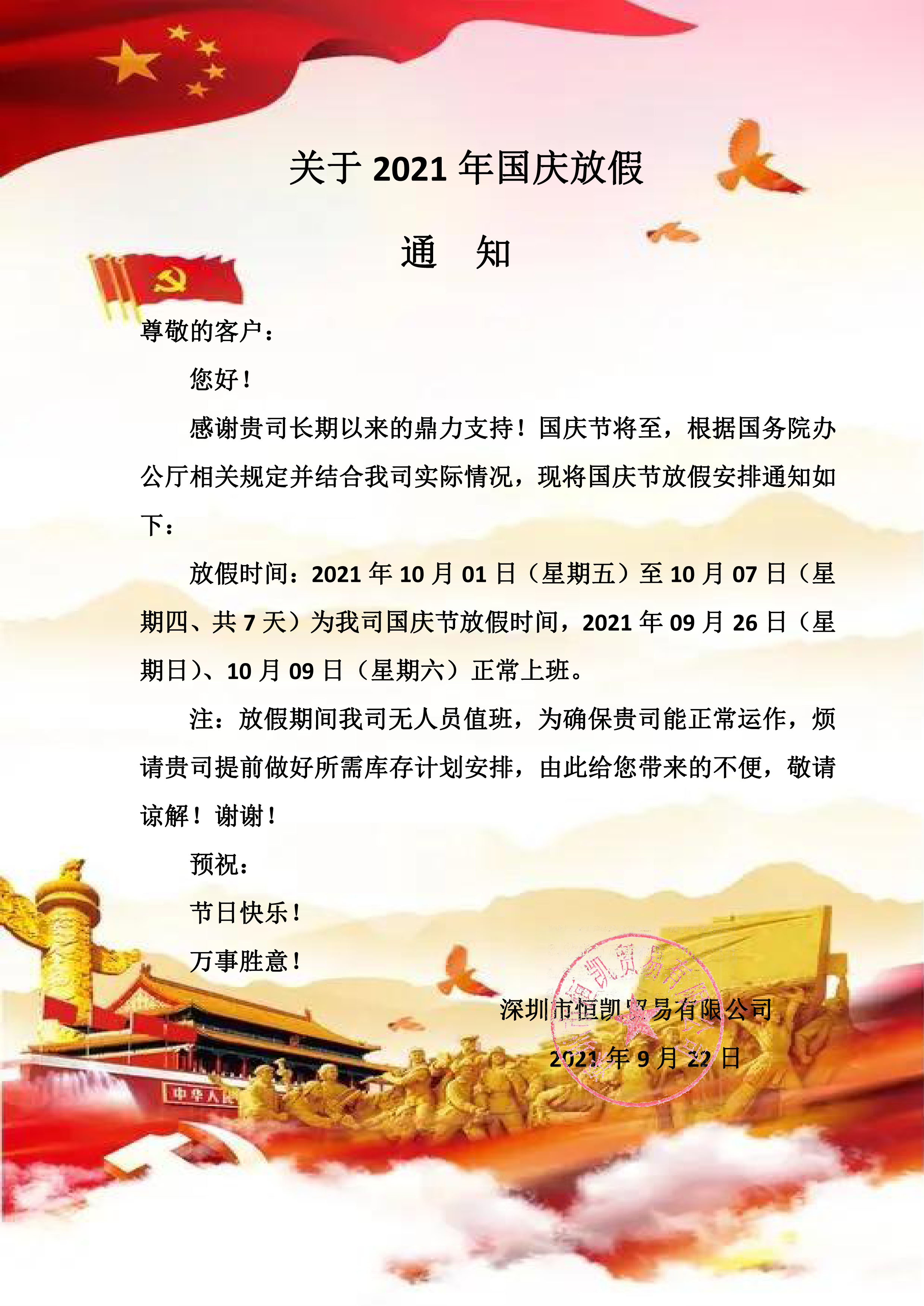 關于2021年國(guó)慶放假通知