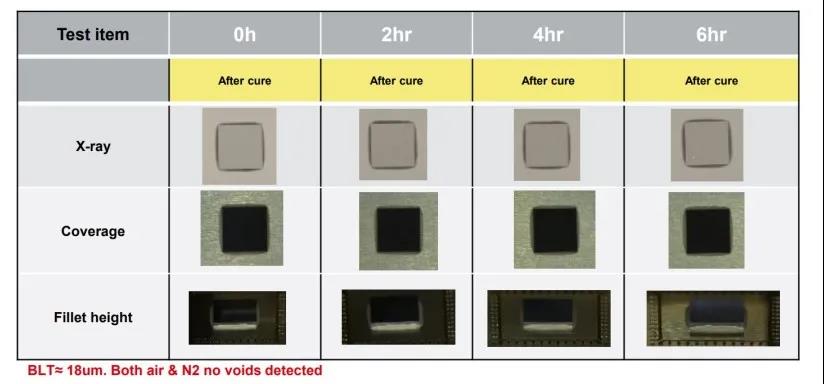 經(jīng)過(guò)2-6小時(shí)固化,通過(guò)X-ray等設備發(fā)現該材料幾乎無空洞