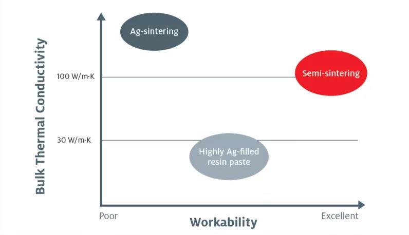 漢高半燒結銀材料較普通銀材料有更全面(miàn)的導熱和可操作性能(néng)